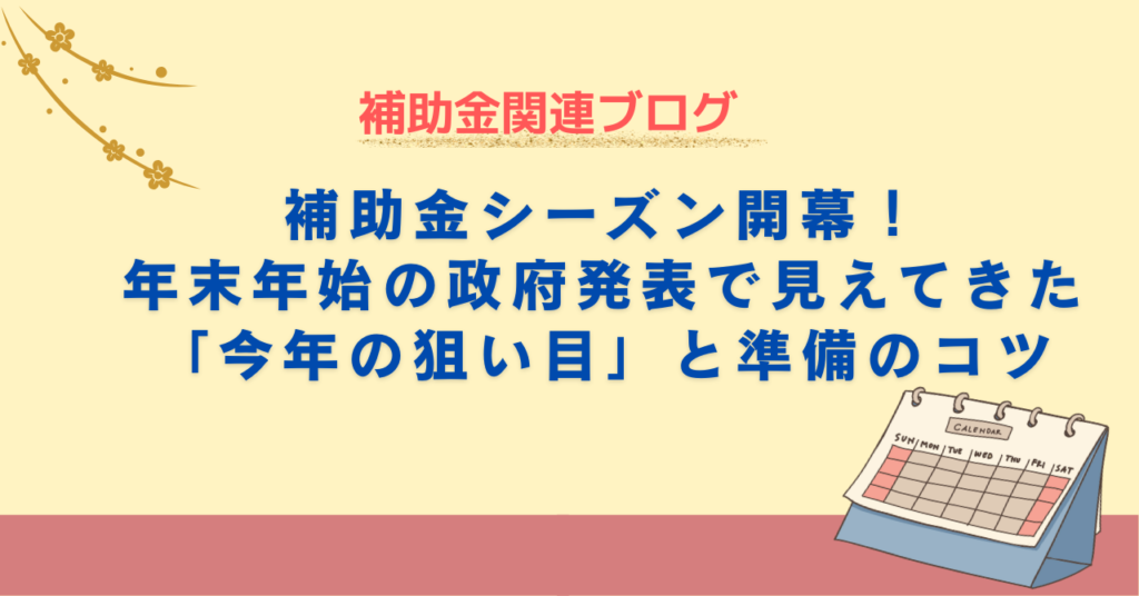 【補助金ブログ】補助金シーズン開幕!年末年始の政府発表で見えてきた「今年の狙い目」と準備のコツ